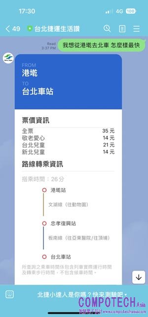 此外,台北捷運則整合 LINE CLOVA Chatbot 及 Azure OpenAI 服務,於自家 LINE 官方帳號推出捷運路線、票價等智慧查詢功能。由 LINE CLOVA Chatbot 接收及回覆用戶查詢需求,並透過 Azure OpenAI 服務針對用戶語意及需求進行語料訓練,確保系統在各式情境下得以理解用戶語意與需求,提供搭乘旅客精準之票價、轉乘時間及最佳路徑等,即時回覆資訊。