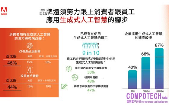 Adobe大中華區董事總經理吳振章表示:「生成式人工智慧技術在提高員工生產效率和客戶體驗方面將積極發揮作用,但在企業採用時,需同步制定相關的人工智慧解決方案使用政策和監督管理機制,避免其可能帶來的安全、隱私、資料處理和合規標準等風險。這將有利於增強消費者對品牌的信任。」
