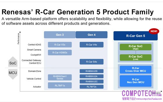 另外也分享了新一代R-Car系列中即將推出的兩項MCU產品改進計畫。其中之一是新的跨界MCU系列,旨在為新一代汽車E/E架構中的域(domain)和區域(zone)電子控制單元(ECU)提供所需的高性能。這些MCU將縮小傳統MCU與先進R-Car SoC之間的效能差距。其次,瑞薩預計推出專為汽車控制市場量身打造的獨立MCU平台。這兩款MCU均採用Arm®架構,並將成為業界領先的R-Car系列的重要成員,為工程師提供軟體開發上完整的可擴展性和可重用性。