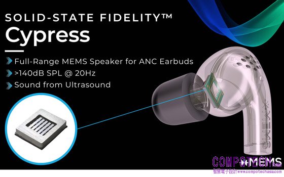 隨著其突破性的Cypress固態MEMS揚聲器的推出,xMEMS工程師用超音波振幅調變轉換原理,取代了傳統的推氣式聲音重現。超音波調變將超音波空氣脈衝轉化為豐富、細緻、低音渾厚且高保真度的聲音。這將是直接替代方案,針對大音量消費性主動降噪(ANC)耳機微型揚聲器動圈。