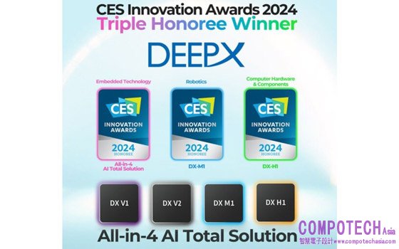 DEEPX’s All-in-4 AI Total Solution, DX-H1, and DXM1 are honored with CES Innovation Awards 2024.
