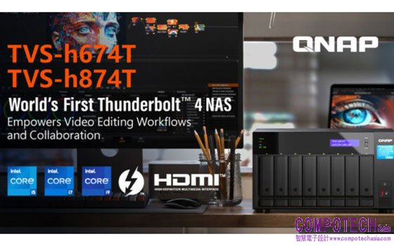 2023年11月22日--威聯通®科技 (QNAP® Systems, Inc.) 今日發表 TVS-h674T 與 TVS-h874T Thunderbolt™ 4 NAS,其搭載第 12 代 Intel® Core™ 處理器,是專為創作者與影音製作而設計的 NAS 儲存方案;將 Thunderbolt™ 4 NAS 導入繼有的檔案處理工作流,可協助用戶享受更高生產力,以極高的效率管理與保護珍貴的創作檔案。