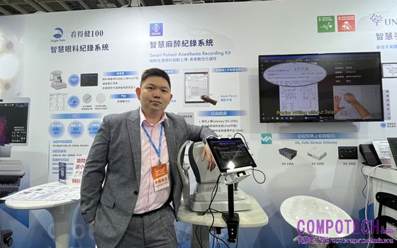 新光醫院今年與筑波醫電、新光保全、昕新智慧診所、新光健檢中心、友華、遠傳等夥伴攜手展示智慧醫療的豐碩成果。本次展覽的一項重要亮點是眼科紙本病歷的數位化,以往眼科檢查後需印出熱感紙,貼附於紙本病歷後送至診間,但這種方式無法長久保存且需等候病歷遞送。看得健100結合 DS-4000 技術將檢查儀器資料上傳至醫院雲端,病患檢查完成後,醫師即可查看檢查數據,並使用 Uniiform 做手繪圖診斷,使檢查數據結構化並簡化看診流程。在本次展覽中,我們讓參與的貴賓體驗眼科檢查與手繪診斷的完整過程。