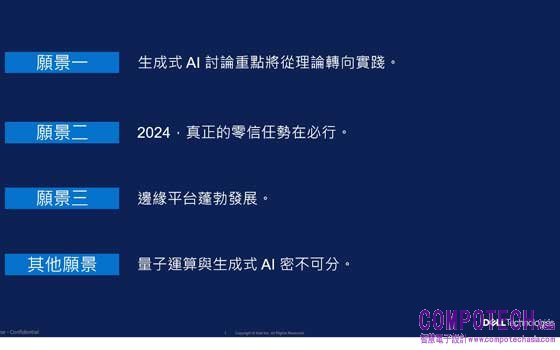 戴爾科技集團全球技術長John Roese表示:「雖然生成式AI在促使企業與世界轉型方面激發令人難以置信的創造力,但在真實世界中,規模化的生成式AI應用依然很少。2024年,我們將看到第一波生成式AI企業專案達到成熟的水準,顯現生成式AI於早期階段未了解的重要面向。」