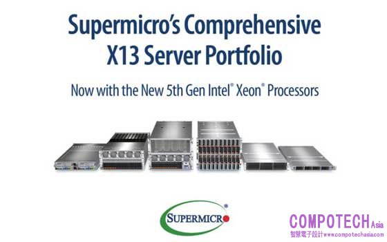 2023年12月20日--Supermicro, Inc.(納斯達克股票代碼:SMCI)為AI、雲端、儲存和 5G/邊緣領域的全方位 IT 解決方案製造商,宣布其基於工作負載最佳化X13系列伺服器的機櫃氣冷和液冷解決方案開始支援最新第五代Intel Xeon處理器(原代號Emerald Rapids)。該新產品系列包括用於生成式AI的GPU伺服器、吞吐量與延遲最佳化的E3.S Petascale伺服器、用於大規模物件儲存且具高成本效益的高密度Enterprise和Simply Double儲存伺服器,以及具有更高儲存容量的全新4節點SuperEdge系統。