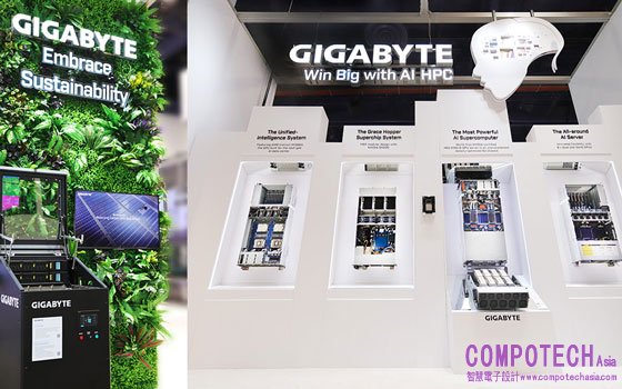 技嘉率同子公司技鋼科技Giga Computing展出四台頂級規格的AI伺服器。其中,備受矚目的新款AI伺服器G383-R80支援AMD Instinct™ MI300A APU,採用CPU與GPU共享128GB HBM3高頻寬記憶體的晶片設計,實現大幅躍進的資料傳輸效率,可在大型AI模型運算、即時大數據分析、金融交易和電信等領域發揮卓越的運算力。