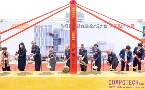 2024年1月30日--聯發科技今日 (30) 舉行新竹高鐵辦公大樓開工動土典禮,此棟新辦公大樓位於聯發科技2022年取得開發經營權的高鐵新竹站專二區(全名為「高速鐵路新竹車站特定區車站專用區(二)」),將以「城市共享、城市綠軸、城市匯聚、城市低碳」四個城市概念,打造結合辦公區域與城市空間的綜合辦公大樓,串聯當地生態與永續建築設計,預計於2027年落成,將可進一步促進新竹高鐵站周邊經濟及商業活動發展。今日動土典禮邀請到行政院副院長鄭文燦、經濟部長王美花、交通部政務次長胡湘麟、新竹縣長楊文科、產業發展署副署長陳佩利、鐵道局長楊正君、科管局局長王永壯、與竹北市長鄭朝方等貴賓出席,共同見證聯發科技在台持續深耕的另一個里程碑。