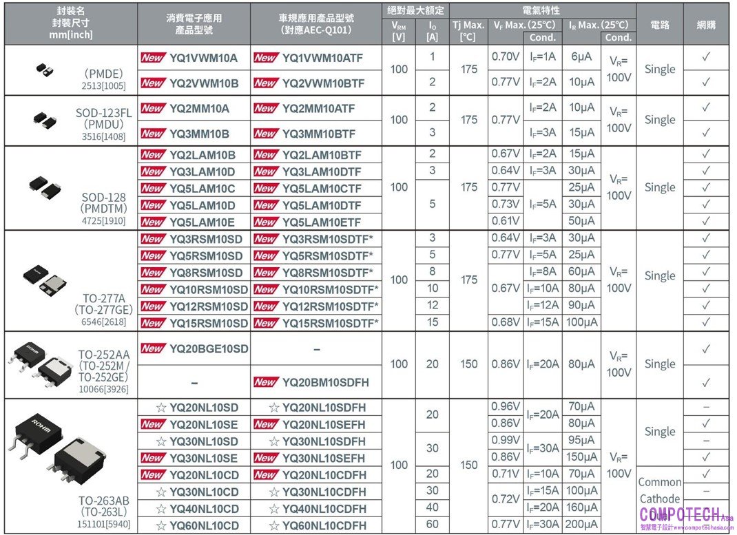 《車載小型高效蕭特基二極體「YQ系列」的優勢》