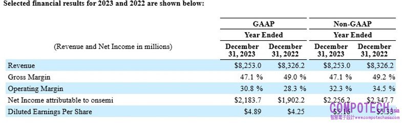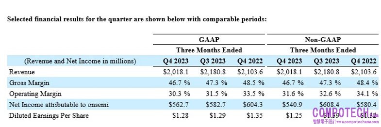 2024年2月6日--安森美(onsemi,美國納斯達克股票代號:ON)公佈其2023年第四季度及全年業績,亮點如下: