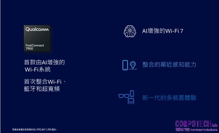 • 高通FastConnect 7900 運用AI樹立高效能、低延遲和低功耗連接技術的全新標竿。