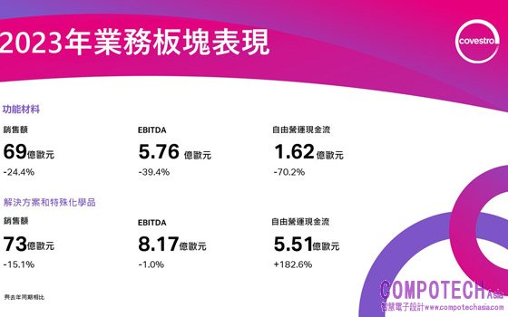 2023年第四季度,科思創的銷售額較去年同期下降15.6%至約33億歐元(2022年同期:40億歐元),這主要因該季度較低的銷售價格水準造成。第四季度EBITDA為1.32億歐元(2022年同期:-3800萬歐元),自由營運現金流則為7300萬歐元(2022年同期:5.5億歐元),兩者均為正值。