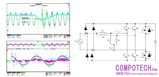 第二個難題是復原 AC 後恢復 PFC 運作。此事件的核心問題是因為 PFC 上的旁路二極體會將輸出電壓充電至輸入正弦波峰值,使輸出電壓降到此高峰值以下時最容易發生,尤其在高線路上。發生這些事件時,轉換器沒有停止電流的機制,因此會造成突波電流極大。事件期間控制開關不當會造成電感器飽和,引發 OCP 事件及進一步放電輸出電壓,使情況惡化。這段時間內需要精準的控制演算法,此需求再次因 iTCM 拓撲結構的高頻運作點以及用於Lb1 和 Lb2 的小值電感器而倍增。