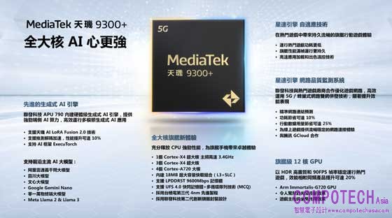 天璣9300+以先進的全大核架構設計和生成式AI引擎帶來更優異的旗艦體驗