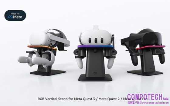 新推出的RGB立式支架采用人性化的模塊化設計和推入式組裝,易於安裝和使用。它與Meta Quest 3、Quest 2和Quest Pro兼容,確保廣泛可用。它采用磁性USB Type-C接口,可輕鬆為设备充電。用戶還可以通過16種預設的多色RGB燈光選項,来选择自己喜欢的灯光效果。"