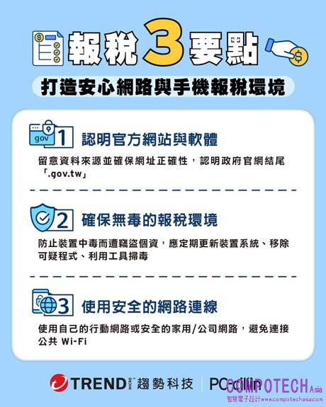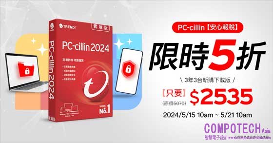 此外,趨勢科技於報稅期間推出「安心報稅 限時5折」活動,凡於5月15日上午10點至5月21日上午10點活動期間內,新購入PC-cillin 2024 雲端版三年三台下載版即享有限時五折優惠,同時提出網路與手機報稅三要點,助民眾在報稅前做好安全防護、遠離資安威脅。