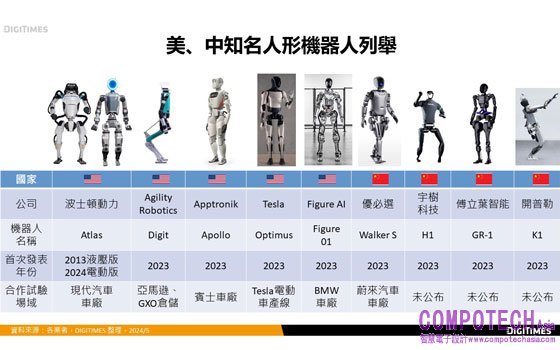 2024年5月20日 --隨著AI、感測器、材料等技術突破與成本下降,加上勞動力短缺的影響,全球人形機器人產業正加速發展,並積極導入場域試驗,以證明人形機器人的潛在利益與商機。近2年尤其以美、中兩國發展較受矚目,DIGITIMES 分析師林欣姿認為,未來5~10年人形機器人將迎來爆發性成長,至2035年將創造近260億美元產值。