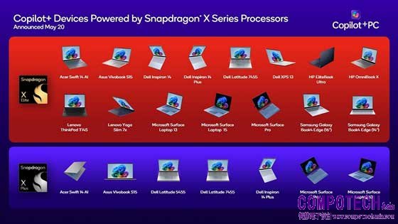 今日發表的搭載Snapdragon X Elite和X Plus的Copilot+ PC包括: