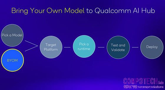 Qualcomm AI Hub是開發人員取得資源、工具和服務的途徑,以實現出色的裝置上AI效能,並擁有不斷增加的模型庫,其包含100多個預先最佳化的AI模型,並同步在Hugging Face和GitHub推出。此外,Qualcomm AI Hub現在允許開發人員「自帶模型」(Bring Your Own Model ,BYOM),能夠專門針對 Snapdragon 和 Qualcomm 平台上傳、最佳化和編譯模型,包括支援PyTorch、TensorFlow和ONNX等所有主要框架。開發人員可以在不到五分鐘的時間內,利用幾行程式碼輕鬆在雲端託管裝置上測試和驗證模型。簡化模型最佳化和驗證流程後,開發人員可以節省寶貴的時間和精力,加快開發和部署週期,協助加快迭代速度。