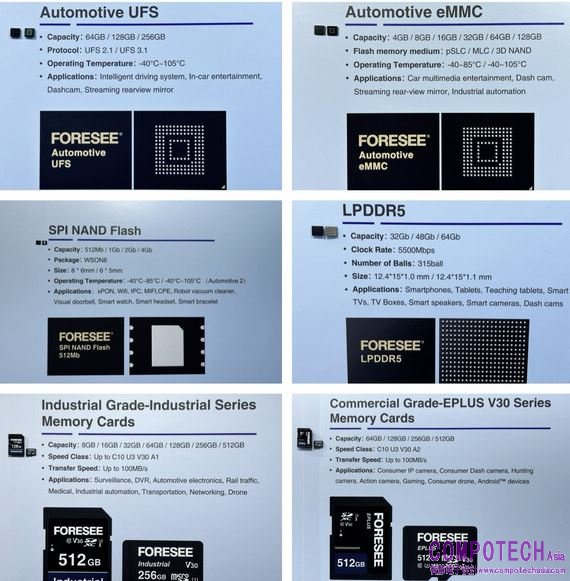 FORESEE車規級UFS/eMMC 採用車規級資源和高品質器件,配合自研固件演算法,以及嚴苛的AEC-Q100可靠性標準驗證測試,能夠有效確保產品在極端溫差、機械應力、強烈振動、電磁幹擾的環境下長期穩定運行,確保資料安全。產品支援4GB~128GB容量,並包含-40℃~85℃(Grade3)、-40℃~105℃(Grade2)兩個版本,目前已服務超過20家知名品牌汽車客戶,以及DVR、IVI、儀錶、T-box等10餘種車載應用。