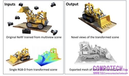 NeRF 是一種 AI 模型,可根據從環境中不同位置拍攝的一系列 2D 影像來渲染 3D 場景。在機器人等領域,NeRF 可用於產生複雜現實場景的沉浸式 3D 渲染,例如雜亂的房間或建築工地。然而,要進行任何更改,開發人員需要手動定義場景的轉換方式,或完全重新製作 NeRF。