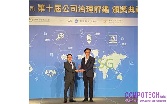 宏正榮獲「第十屆(2023年度)公司治理評鑑」中「市值50億元以上至100億元」中小市值類別評鑑中排名前5%,由田慶威財務長暨發言人代表領獎。