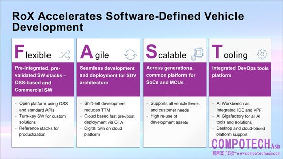透過預先整合開發SDV所需的各層基本軟體,RoX大大降低了汽車OEM和一級供應商系統設計的複雜性,進而節省時間和金錢。