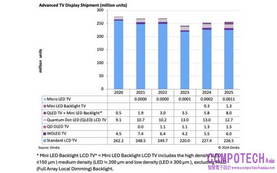 Samsung、 LG Electronics、Sony、TCL 和 Hisense 皆預期在 2024 和 2025 年其迷你 LED 背光電視顯示器出貨量將達到雙位數的增長。