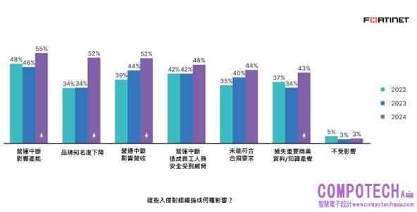 2024年7月2日--全方位整合與自動化網路資安領導廠商 Fortinet®(NASDAQ:FTNT)今(2)日發布《2024年OT與網路資安現況調查報告》(2024 State of Operational Technology and Cybersecurity Report),調查結果顯示,今年有近三分之一(31%)的企業組織表示其OT環境遭入侵超過六次,相較於2023年的一成(11%)顯著上升。儘管這些仰賴OT環境運作的產業整體防護能量有所提升,但多數組織在保護融合的IT和OT環境方面仍面臨重大挑戰。