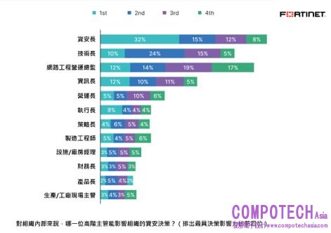 越來越多企業組織將OT場域的安全管理與資安長(CISO)的策略更緊密結合,Fortinet數據顯示,具備這種傾向的企業組織比例,已從2023年的17%增長到今年的27%。於此同時,將OT安全責任轉移至其他最高管理層職位(C-suite角色,包括CIO、CTO和COO)的比例,在未來一年內預計將會提升到60%以上,清楚地顯示出企業組織在2024年後對OT安全和風險管理的高度重視。此外,調查也顯示,在某些組織中,雖然CIO未直接負責OT安全管理,但這些責任正從網路工程總監上升至營運副總裁,進一步顯示了OT安全管理工作在組織中重要性的提升。無論由哪一個職位負責監督OT安全的工作,皆代表OT安全正成為企業高層的關注焦點。