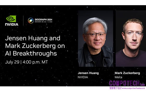 NVIDIA創辦人暨執行長黃仁勳和Meta創辦人暨執行長馬克‧祖克柏(Mark Zuckerberg)將於7月 29日在美國丹佛舉行的第50屆 SIGGRAPH電腦繪圖大會上進行公開爐邊對談。