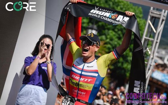 Gustav Iden是2022年夏威夷科納鐵人三項世錦賽冠軍,同時也是2019年和2021年鐵人三項70.3世錦賽冠軍得主:照片捕捉到他在2022年鐵人三項世錦賽上衝過終點線的瞬間,身上佩戴著配備艾邁斯歐司朗溫度感測器的CORE可穿戴設備。
