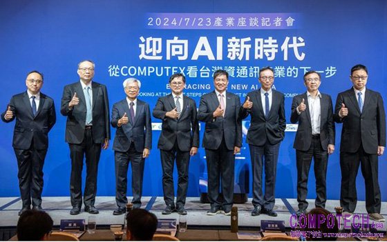 為延續COMPUTEX展覽能量,積極面對AI新工業時代,台灣資通訊產業可能遇到的機會與挑戰,由台北市電腦公會(TCA)主辦,台灣玉山科技協會協辦,於7月23日下午辦理「迎向AI新時代 - 從COMPUTEX看台灣資通訊產業的下一步」產業座談記者會,雖碰到凱米颱風進逼,仍吸引了多家中外媒體與貴賓到場。