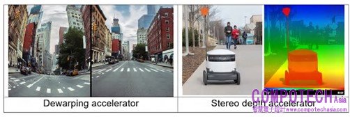 此等級的邊緣 AI 處理器 SoC 可加快硬體中運算密集的低階暴力像素處理視覺工作,例如 ISP、鏡頭失真修正、多重調整及視覺處理加速器核心中的雙向雜訊濾波。深度和運動感知加速器核心可加快立體深度評估與密集光流,有助於增強對環境的認知,如 图 3 中所示。