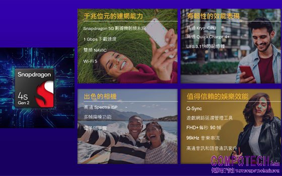 高通技術公司資深副總裁暨行動終端裝置事業部門總經理Chris Patrick表示: 「Snapdragon 4s Gen 2行動平台是推動5G技術普及的一項重大進展,讓更多人能夠以5G的速度探索世界。透過尖端的工程技術,我們得以在成本效益與可靠度之間取得平衡,以全天候的電池續航力提供強大效能,整合的 AI, 並搭配5G的廣泛可及,實現更強大的行動體驗。」