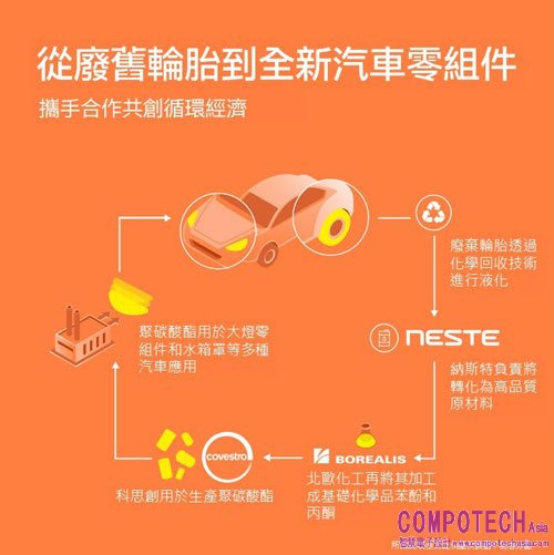 科思創工程塑料事業部汽車業務全球銷售和市場高級副總裁Guido Naberfeld表示:「實現循環利用需要協力合作,與納斯特和北歐化工的此次合作證明了我們具有將其變為現實的可能性。我們正合力打造將廢舊輪胎再次轉化為新汽車零組件的方案。透過這一舉措,我們不僅為汽車客戶提供支援,也為『如何兼顧高性能材料和回收成分』這一深受價值鏈關注的問題提供了答案。」