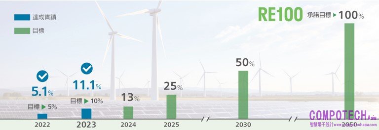 聯華電子2021年宣示於2050年全面採用再生能源,並加入RE100國際再生能源倡議。2023年,聯電集團的再生能源使用占比達11.1%,相較於2022年的5.1%翻倍增長;同時,於台灣簽訂裝置容量達181MWp的再生能源採購合約,已自2024年起供電,以穩健的腳步向2025年25%和2030年50%的目標推進。