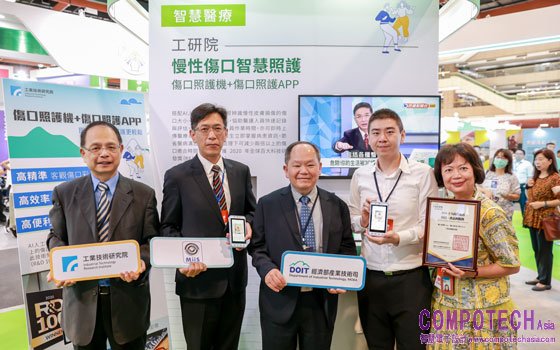 長者若行動不變,很容易產生褥瘡或是其他各類的傷口,而且恢復治療期也相當的長,如何確保傷口能保持清潔避免惡化,又能判斷在不同的階段搭配合宜的治療方式,對家屬和照護機構來說實在是一件困難的工作。工研院開發出的傷口照護機結合App,只要遠端使用這台輕便的手持儀器,就可精準的計算傷口大小、辨識出皮膚損傷的深度與組織情況,就可以協助醫事人員判斷傷口狀況並提出合適的治療方案,可大幅減輕照護人員的負擔,也能使記錄與追蹤更客觀。目前這套傷口照護系統已導入六縣市、共92家醫院與居護所,實際使用人數已達近3千人。