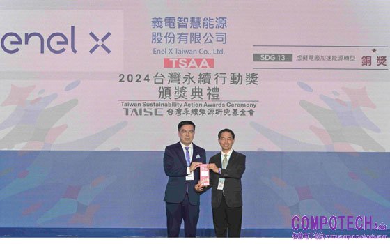 2024年8月9日--義電智慧能源台灣(Enel X Taiwan)今年首度參加由台灣永續能源研究基金會(TAISE)舉辦的「第四屆台灣永續行動獎」,即以「虛擬電廠加速能源轉型」行動方案,榮獲「台灣永續行動獎SDG 13氣候行動類別銅獎」,推動能源轉型及應對氣候變遷的成果與貢獻備受肯定。