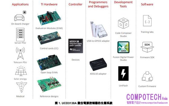 在現今的高電壓系統中,對冗餘性、國際標準合規性以及減少依賴外部各方進行工程設計活動的需求,日益增加。可擴充的平台應可透過相容的硬體和軟體,支援各種設計。TI 提供如參考設計、評估模組、偵錯器與程式等資源,有助於更快速地在不同應用間評估數位電源控制器與 MCU,進而減少開發自訂電路板的需求。TI 也對不同系統配置提供軟體資料庫和韌體範例,以加速原型製作與軟體開發。Fusion Digital Power™ Studio 等 GUI 工具有助於快速調整參數並將其最佳化,這通常是需要外部元件才可進行的作業,此外也支援對原型製作與生產進行裝置編程。在 图 1 中提供了 UCD3138A 生態系統所提供的資源摘要。