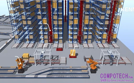 • 物理仿真模擬:Emulate3D 內建物理運算的特性,有效真實反映物流與機械動作所產生的物理狀態,協助廣運機械作業人員預視廠房實際運作情境及流程。