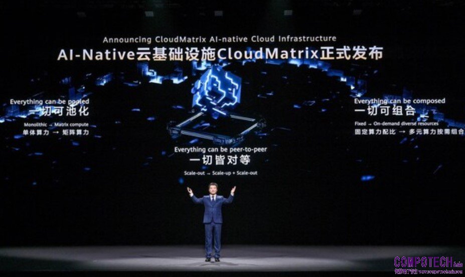 第二,AI的算力至關重要,需要構建與企業需求相匹配的AI原生雲基礎設施。會上,華爲雲發佈AI原生雲基礎設施CloudMatrix,創造性地將CPU、NPU、DPU、內存等資源全部互聯和池化,從單體算力向矩陣算力演進,構建一切可池化、一切皆對等、一切可組合的AI原生雲基礎設施,爲企業提供澎湃的AI算力。