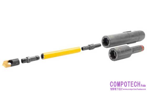花鍵驅動轉接器將旋轉力傳遞至鋼材內部的六角形部分,使機器能更快速地鑽出更大且更深的孔洞。