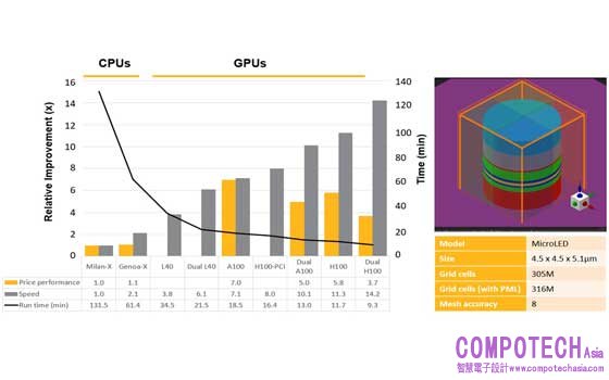 為了緩解挑戰並釋放矽積體光路的超頻寬功能,台積電與Ansys合作,使用NVIDIA GPU的高效率Azure虛擬機器加速Lumerical FDTD模擬。Azure NC A100v4虛擬機器執行模擬,並找出平衡成本與效能的最佳資源。整體結果是在雲端環境中進行大型資料集的無縫部署、圖形介面存取、分散式模擬的擴充,以及後處理。為了實現一致的端對端數位工程工作流程,Azure虛擬桌面提供與桌上型電腦相同的使用者體驗,可順暢轉換至雲端。