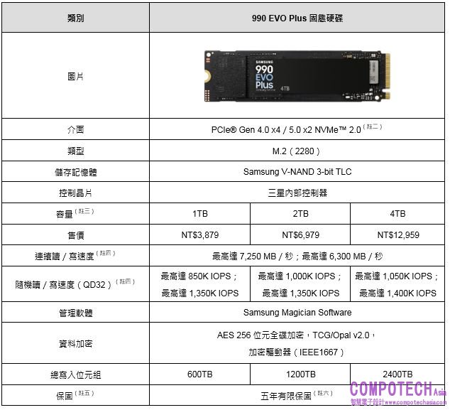 註一:本文產品、容量及上市時間依各銷售通路公告為主。