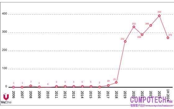 圖說:隨著電動車日益普及,近年車用漏洞數量持續增加,2024上半年車用漏洞數量已經幾乎超過2021年全年數量。資料來源:VicOne資安威脅研究團隊。