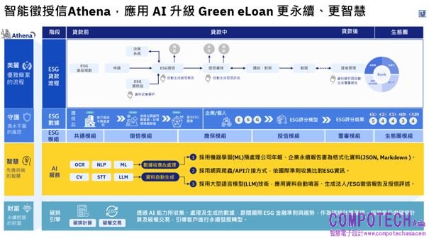 以AI應用服務優化原有 IBM Green eLoan 解決方案既有模組與服務,聚焦於數據收集、處理與自動生成資料,提升徵授信業務流程的效率與品質。