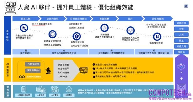 AI與人資團隊協同合作,提供全方位的數據洞察與一站式服務,提升員工體驗、優化員工職涯生命週期,協助主管與人資團隊擬定重要策略,達到提升組織效能和提升7x24小時跨系統的整合服務