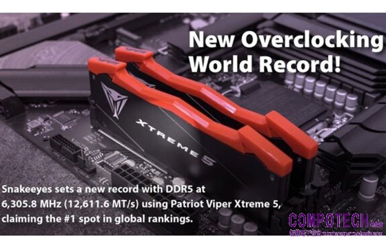 博帝科技(Patriot)旗艦級 DDR5 記憶體產品 Viper Xtreme 5,由知名超頻玩家Snakeeyes在 HWBOT 平台創下全球記憶體速度世界紀錄,達到令人震撼的 6,305.8 MHz (12,611.6 MT/s)。