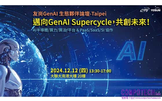 從GenAI生態夥伴論壇活動內容,可以看出半導體在GenAI 時代中的重要性,友尚希望,從半導體通路商出發,憑藉著AI processor/CPU、Storage、光模塊、AI Power、演算法…等堅實的半導體代理基礎、完整的供應鏈體系,未來可以持續扮演AI供應鏈中價值串接的關鍵角色,與更多合作夥伴一同努力,為AI生態系發展注入新動能,共同開創AI時代的無限可能。