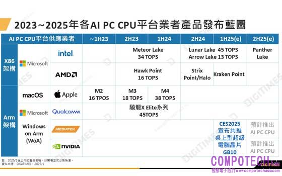 DIGITIMES分析師陳辰妃與簡琮訓認為,聯發科憑藉手機AP市場技術優勢,透過與NVIDIA、Arm合作積極拓展生成式AI應用運算範疇,首波將優先瞄準AI PC市場。